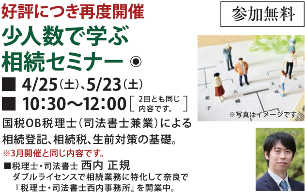 次回セミナー(完全予約制:問い合わせ・予約は近鉄不動産の下記HPリンクにて)※弊所では予約受付等のご対応はできません
