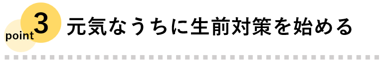 生前対策は認知症になった後ではできないため、認知症発症前に生前対策を終えておけるかどうかが大切なポイントです。